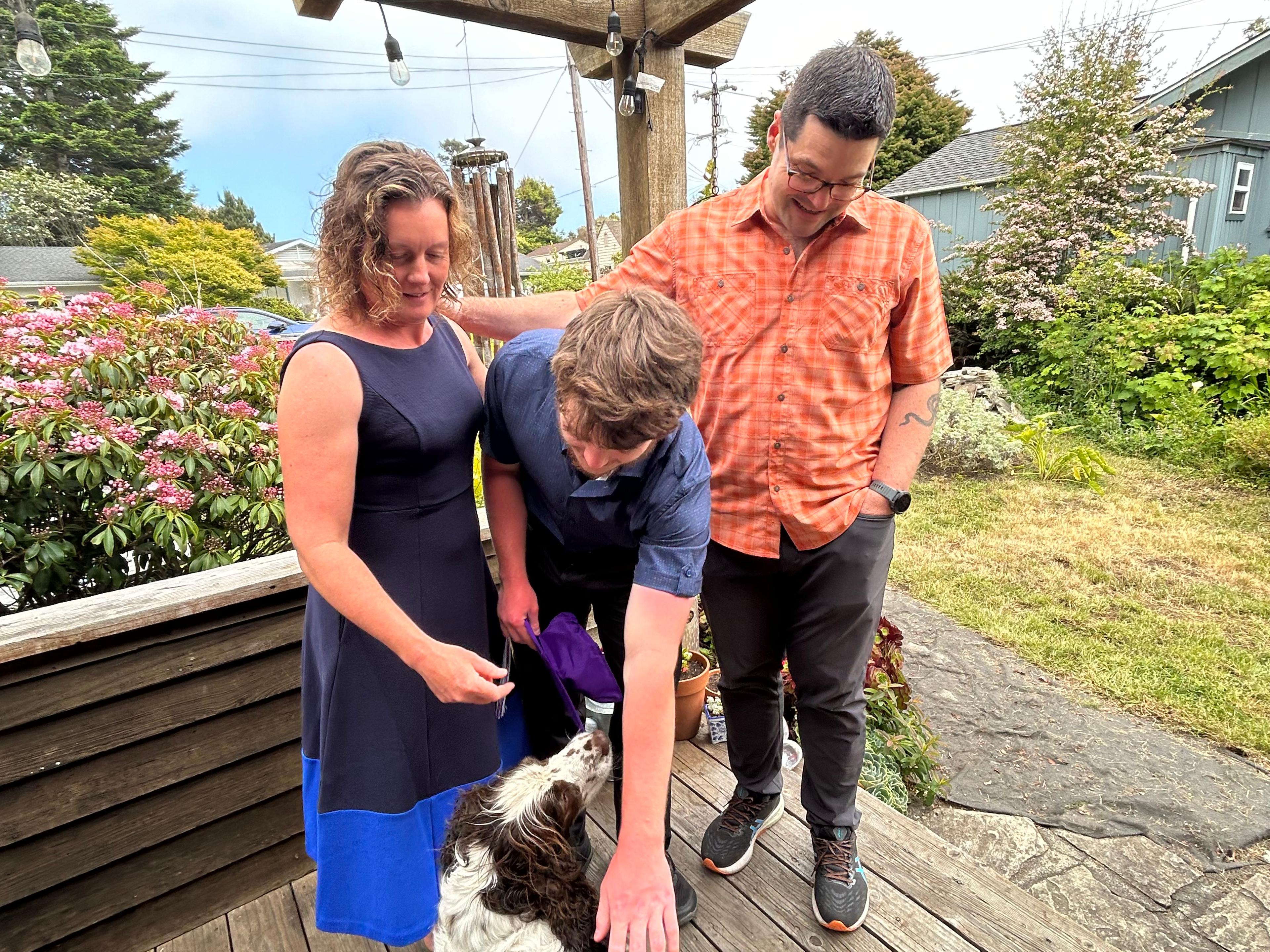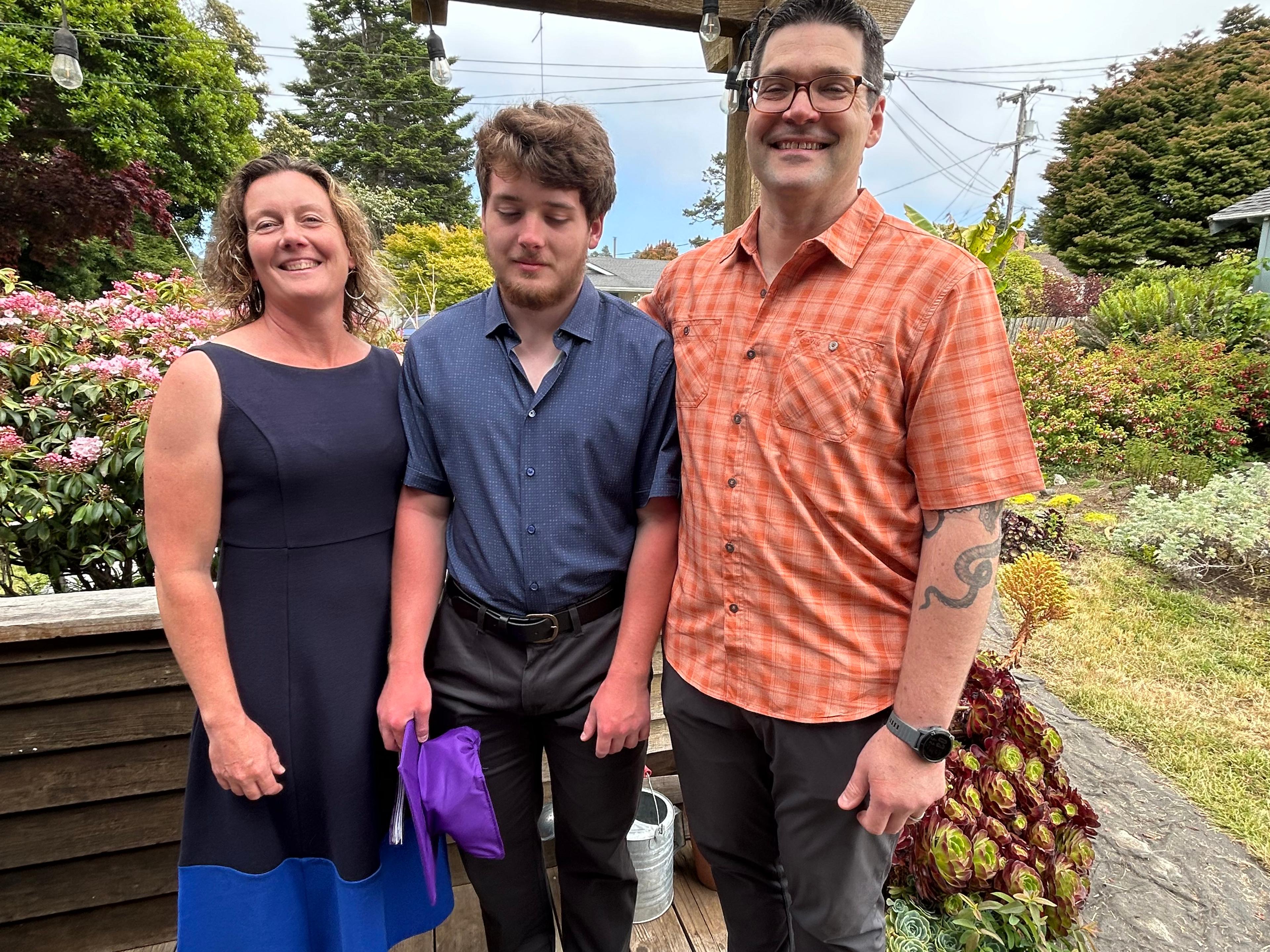 Jim and I left home a week prior. This gave us a chance to visit with my cousins Janet and Russ in Murphys overnight, the next day hike up to Harry’s plaque in Calistoga, then the next day have breakfast with our long time friends, John and Paula in Ukiah before heading further north and west to Fort Bragg. We spent the next few days helping Aspen and Jeremy get ready for more company arriving - Jeremy’s mom Nancy, his sister Megan, niece Chloe (from Kansas City) and Aspen’s aunt and uncle, Jenny and Mike (from Seattle). On Friday, the excitement of the graduation ceremony peaked! It was a moving ceremony, well done with lots of opportunity for several students to speak and share thoughts, reflections and possibilities for their futures. The ceremony was outside, with the air calm and the sky blue. Elliot was happy (as were all of us!) to have reached this pivotal point having accomplished what he did.